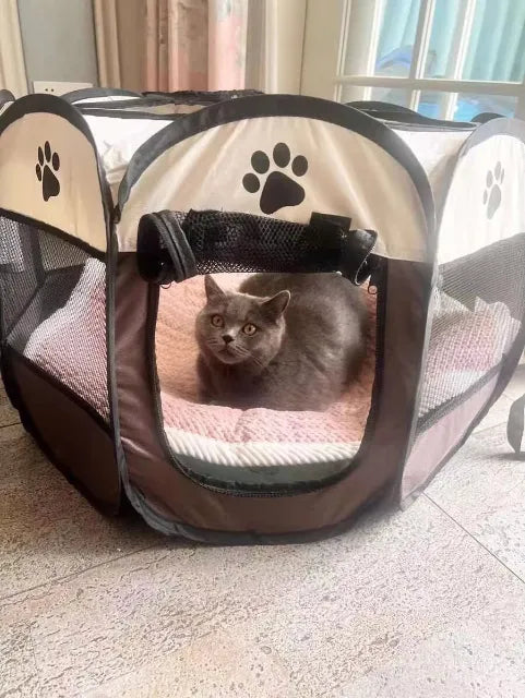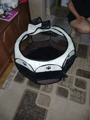 "Love this pet play pen! My cats are thrilled and I feel safe leaving them in it while I'm at work. The foldable design makes it super convenient to store, and its breathable mesh keeps my pets comfortable all day. Would recommend to any pet lover!"