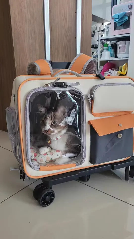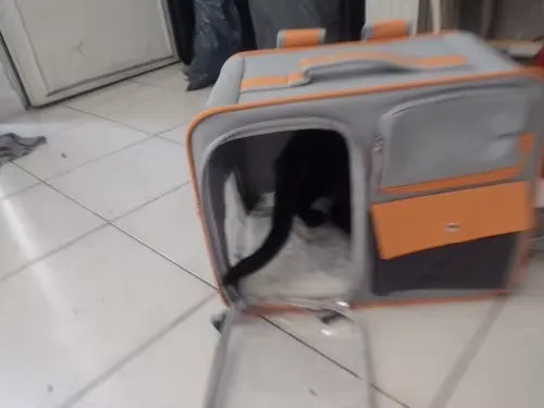 "OMG, this pet trolley is a lifesaver! Perfect for my cats when we go on weekend trips. They have enough space and it's so easy to maneuver. Totally worth it👍"